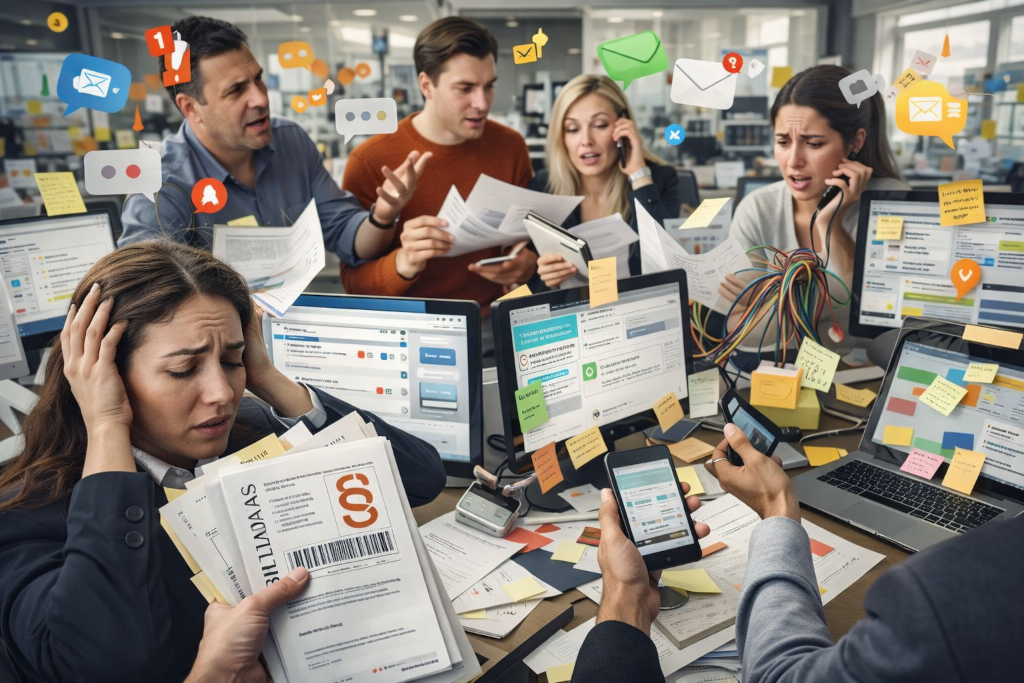Muchas organizaciones siguen apoyándose en una combinación de correos electrónicos, documentos adjuntos, carpetas compartidas y mensajes de chat no estructurados. Este enfoque fragmentado genera problemas recurrentes: